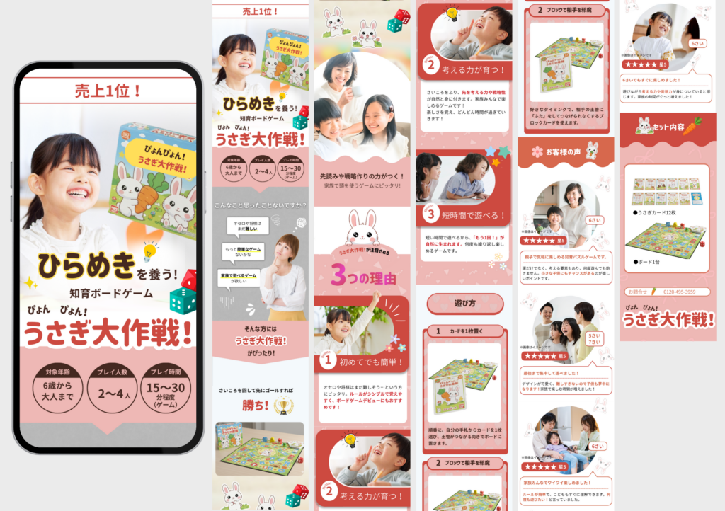 ユーザーの視線や動線を意識したレイアウト設計により、ただ美しいだけでなく「成果につながるデザイン」を心がけています。情報設計からビジュアルまで一貫して対応可能です。ビジュアルとメッセージが自然にリンクする、ストーリー性のあるLPづくりを心がけています。