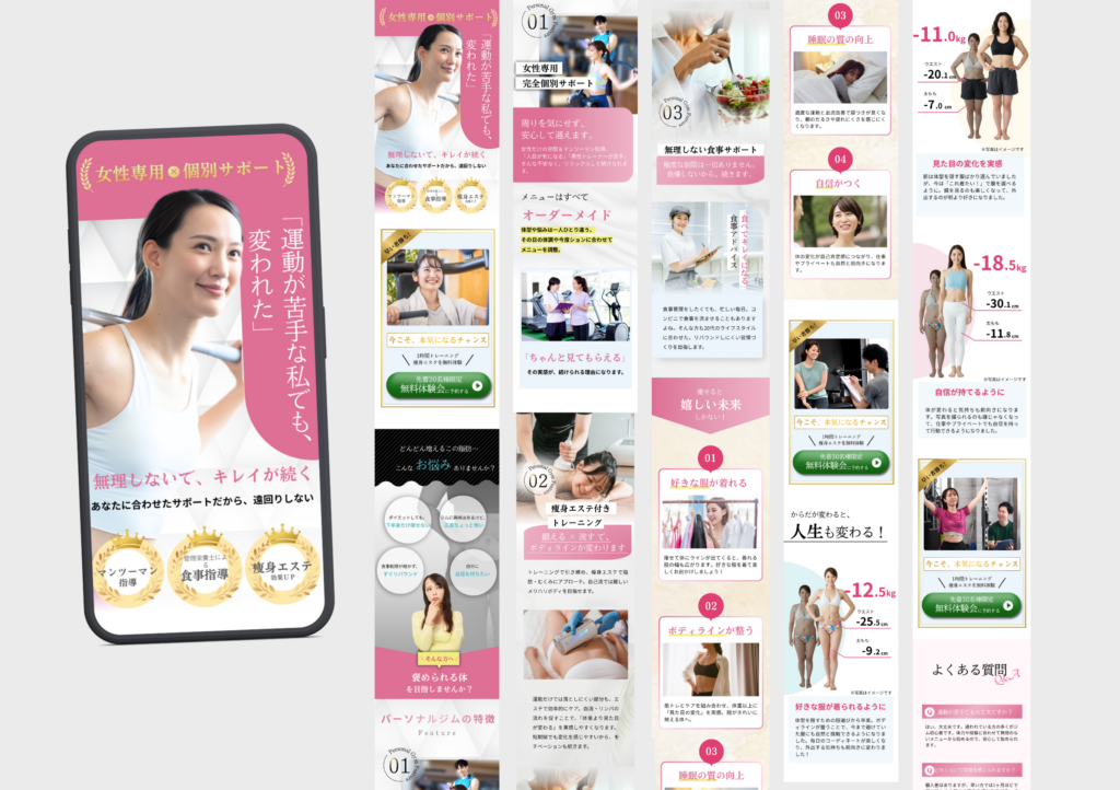 デザイン性の高い「画像LP」にこだわり、さまざまなランディングページを作成しております。
