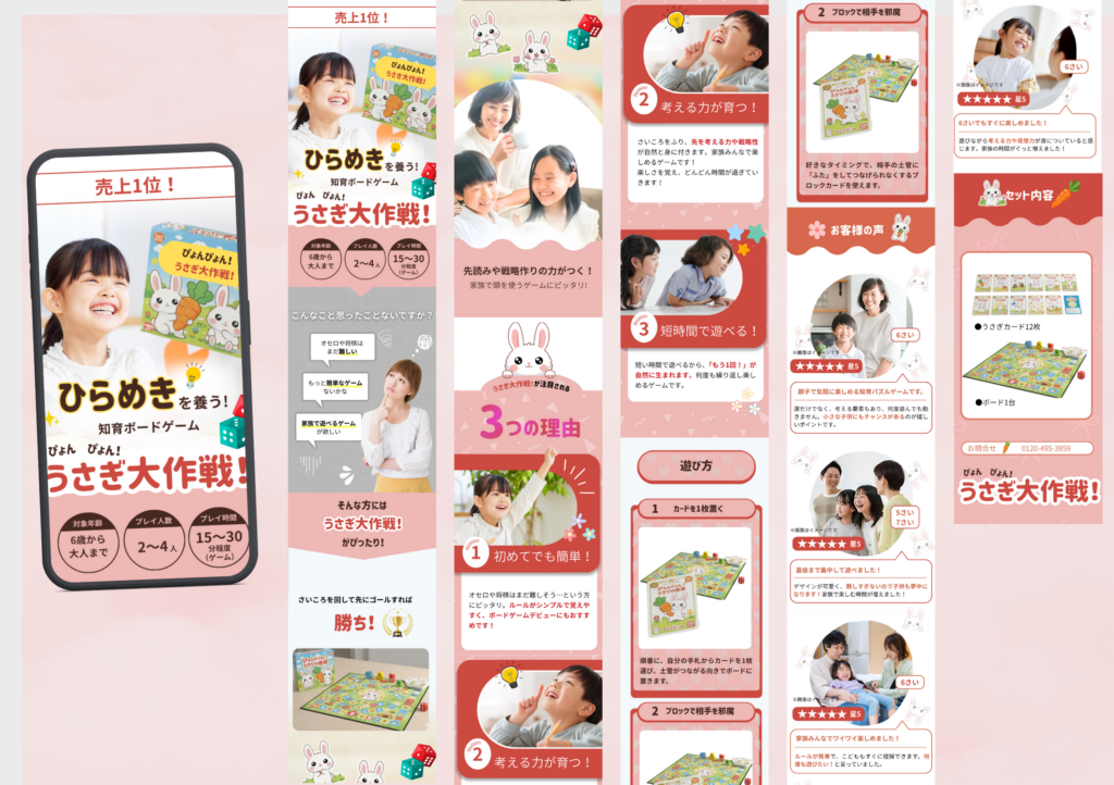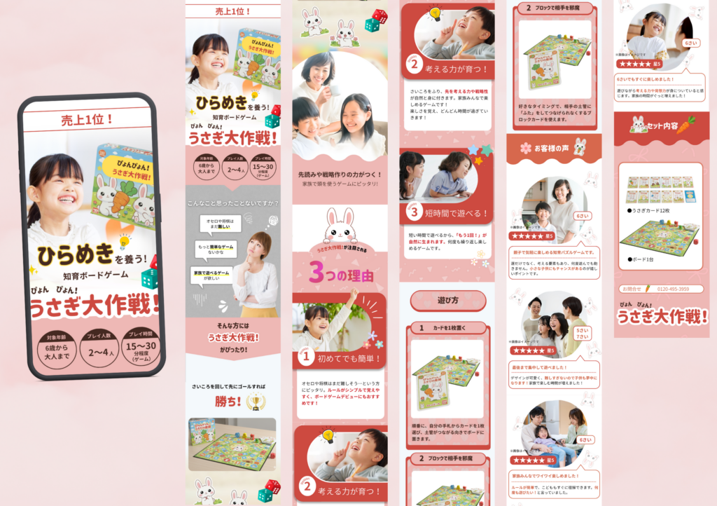 1,2の情報を元にLP全体の構成やラフ案を作成させて頂きます。
